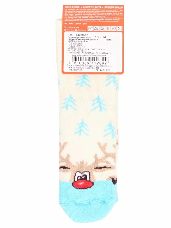 Зимние или межсезонные укороченные детские носки, цвет желтый, разного цвета, состав: 83% хлопок, 16% полиамид, 1% эластан, фабричный артикул 14С3060. Производитель «Брестский чулочный комбинат ОАО, Беларусь» под брендом «Брестские (бчк)».