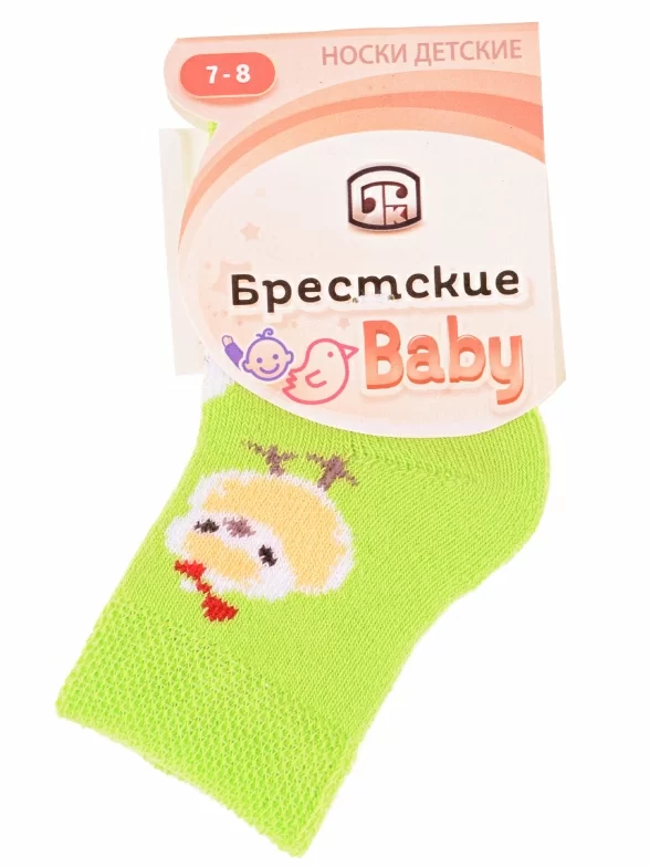 Межсезонные или зимние укороченные детские носки, цвет салатовый, теплые, состав: 83% хлопок, 16% полиамид, 1% эластан, фабричный артикул 14С3060. Производитель «Брестский чулочный комбинат ОАО, Беларусь» под брендом «Брестские (бчк)».