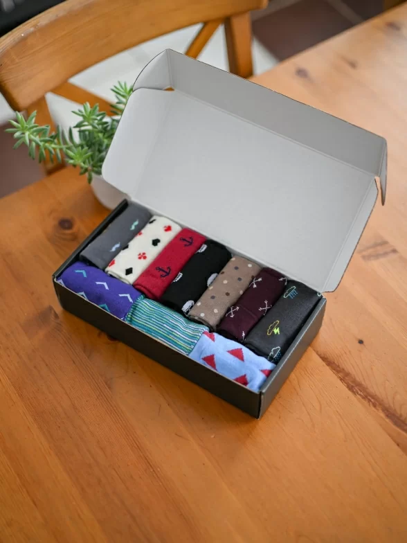 Носки компактно упакованы в стильную коробку! Для сохранности внешнего вида при транспортировке, упаковываются в плотный картон, который предотвратит возможную деформацию или потертости.