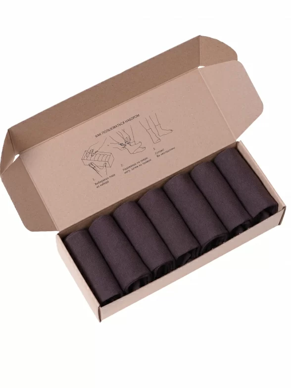 Носки компактно свернуты рулончиками без фабричных этикеток внутри стильной фирменной коробки. Дополнительно упакована в плотный картон, предотвращающий возможные потертости и деформацию во время доставки.