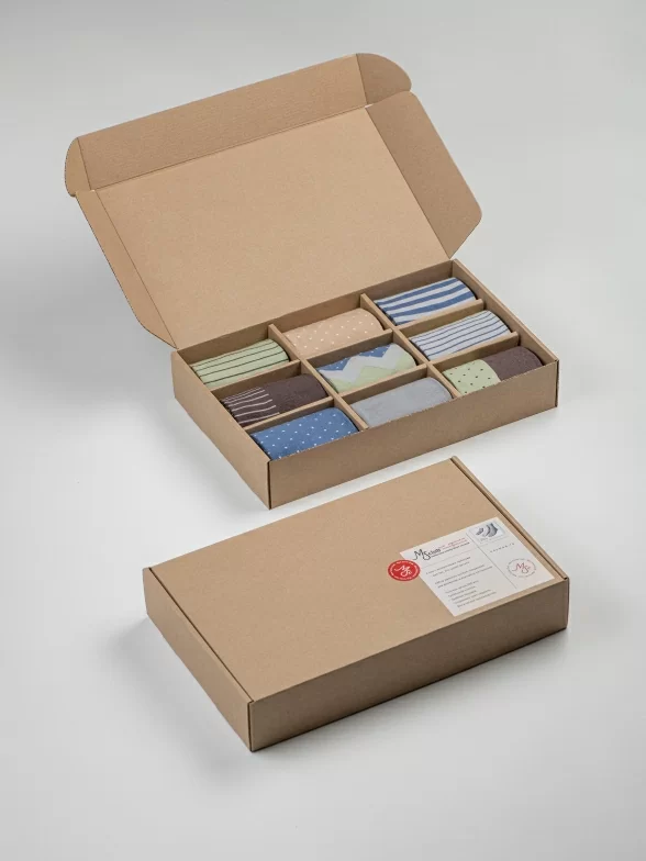 Носки компактно свернуты в аккуратные рулончики внутри стильной фирменной коробки. Для сохранности внешнего вида при транспортировке набор упаковывается в плотный картон.
